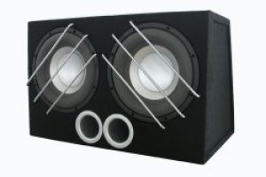 Xelent Dobbel 10" RCD kasse m RCD basser . Kassen er laget av MDF med dobbel front. Separate kammer , chrommede grillbars i fronten . Skrå bakplate med to terminaler. 2*4ohm Høyde 38,5 Dybde i toppen 24,5 og bredde 59,6cm