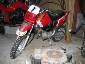Litt mere proff og større en typisk pocetbikecrosser. Luftkjølt slureclutch og fast girbox. 50cc 2takt "automat" med toppfart ca 35km/t. Prisen gjelder nytt produkt i eske, bilde er av min demo som er solgt. |